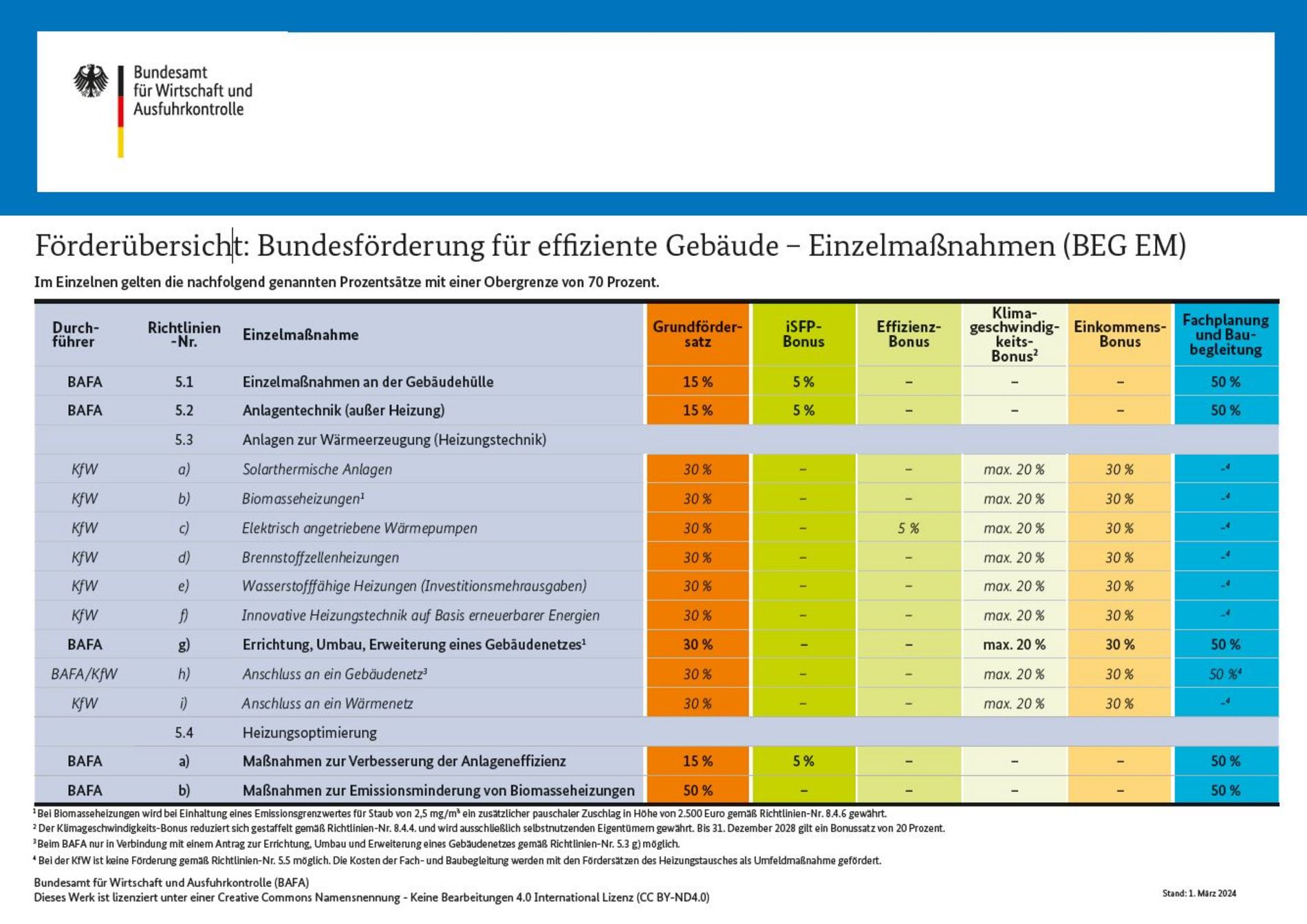 | Gebäude (Neubau, Teil- oder Komplettsanierung, Heizungstausch) | Bundesamt für Wirtschaft und Ausfuhrkontrolle (BAFA) |
