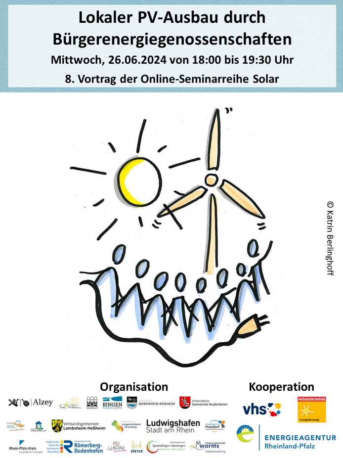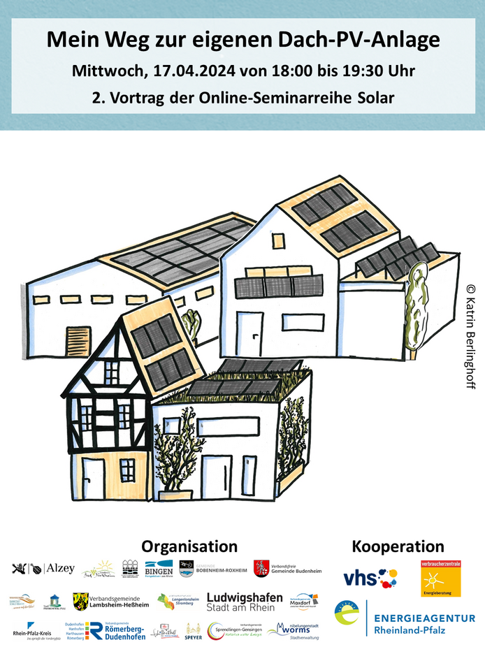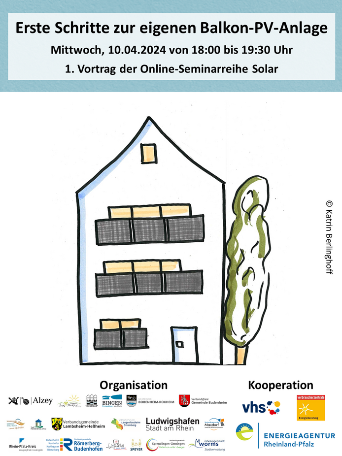Die praxisnahen Fachvorträge werden um Erfahrungsberichte ergänzt und bieten die Möglichkeit Fragen mit den Expert:innen direkt zu klären, damit Sie im Anschluss den Weg zur eigenen Balkon- oder Dach-PV-Anlage gehen können. So erhalten Sie Antworten auf Fragen wie: „Was sind die Kosten, welche Auflagen sind zu beachten und welche Fördermöglichkeiten gibt es?“. Abgeschlossen wird die Reihe mit einem Vortrag für Gewerbetreibende und einem weiteren für Menschen, die sich ehrenamtlich für die Energiewende engagieren möchten.