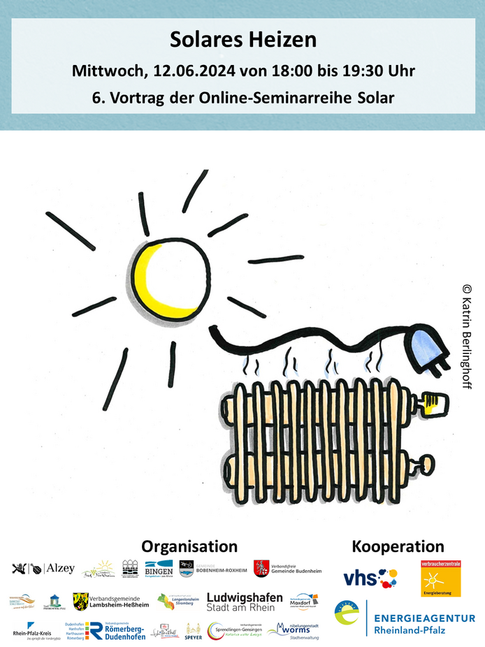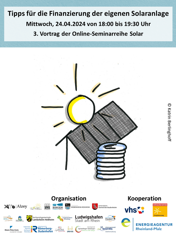 Die Info-Reihe wird organisiert von den Klimaschutzmanager:innen gemeinsam mit den Volkshochschulen und der Verbraucherzentrale in den Regionen Rheinhessen-Nahe und Vorderpfalz. Sie können sich zum gesamten Online-Kurs oder einzelnen Veranstaltungen anmelden. Sie erhalten vor Kursbeginn einen Zugangslink an die von Ihnen angegebene E-Mail-Adresse. Um teilnehmen zu können, wird ein digitales Endgerät mit Internetzugang und Lautsprecher benötigt.
