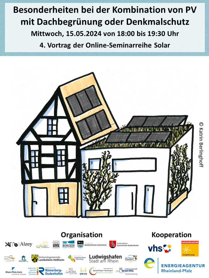 Klimaschutzmanager:innen, Volkshochschulen & Verbraucherzentraleder Regionen Rheinhessen-Nahe und Vorderpfalz laden zu acht kostenfreien Online-Vorträgen ein, jeweils Mittwochabends von 18 bis 19:30 Uhr vom 10. April bis zum 26. Juni 2024.