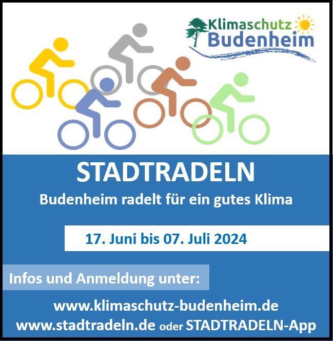 Vom 17. Juni bis zum 07. Juli 2024 findet das diesjährige STADTRADELN in Budenheim statt. Jeder ist eingeladen kräftig in die Pedale zu treten und möglichst viele Fahrradkilometer zurückzulegen und somit in dem 21-tägigen Aktionszeitraum zur Radförderung, Lebensqualität und zum Klimaschutz beizutragen.